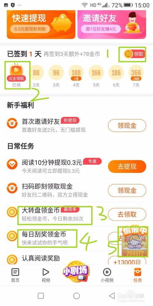 这个任务包括了签到领金币(2)以及时间金币(1),还有转盘金币和刮奖金币,最后还有一个银币银行