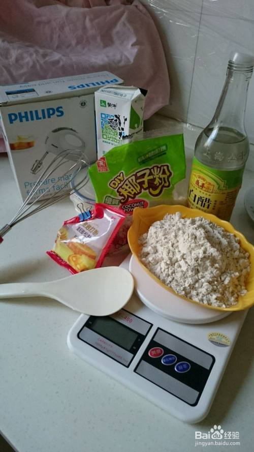准备好照片要用的材料,啊,鸡蛋忘记拍照了!保鲜盒里的是白砂糖。