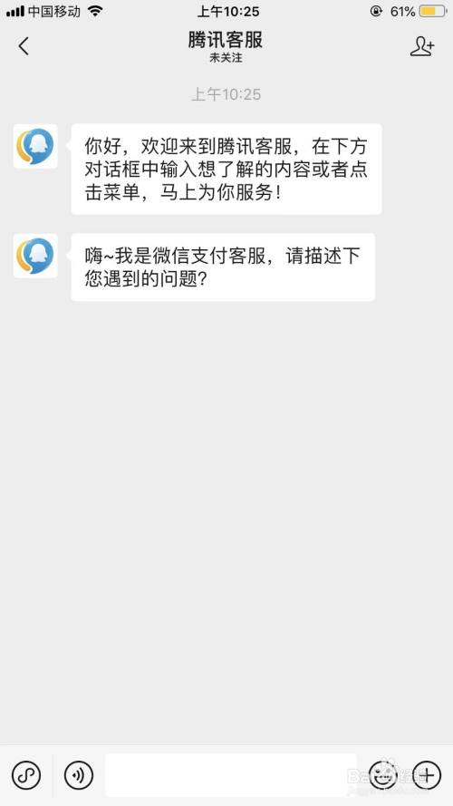 弹出与腾讯客服的对话框,就可以咨询客服关于微信的问题了。