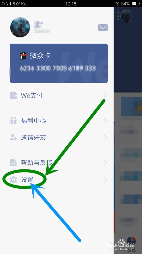 在左侧出现的快捷菜单中,再点击进入微众银行“设置”,如图所示