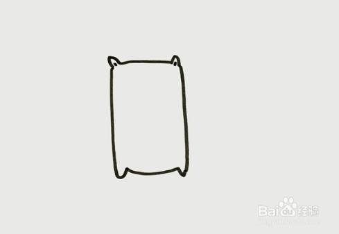 在纸上画一个长方形,四个角都画出尖角作为小猪的耳朵和双腿。
