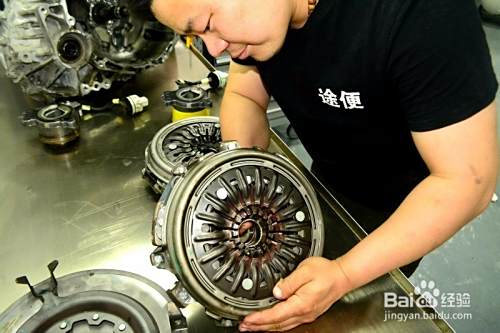 发现飞轮盘内部间隙大,出现前后传动的运转轨迹,导致,车起步有卡拉卡拉的异响问题。本来飞轮盘的运动轨迹是围绕一个同心圆运转的。飞轮盘损坏,需要换改进的飞轮盘,改进的飞轮盘中有扭力减震。