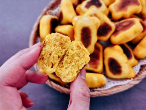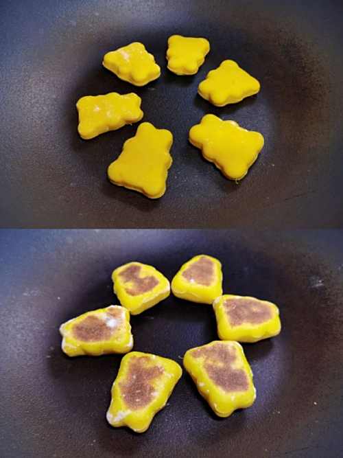 平底锅无需放油,热锅后,放入醒发好的小饼,全程小火,烙至两面金黄色即可 -