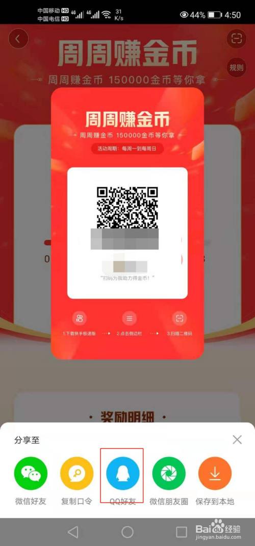 介绍一下快手周周赚活动如何分享给QQ好友。