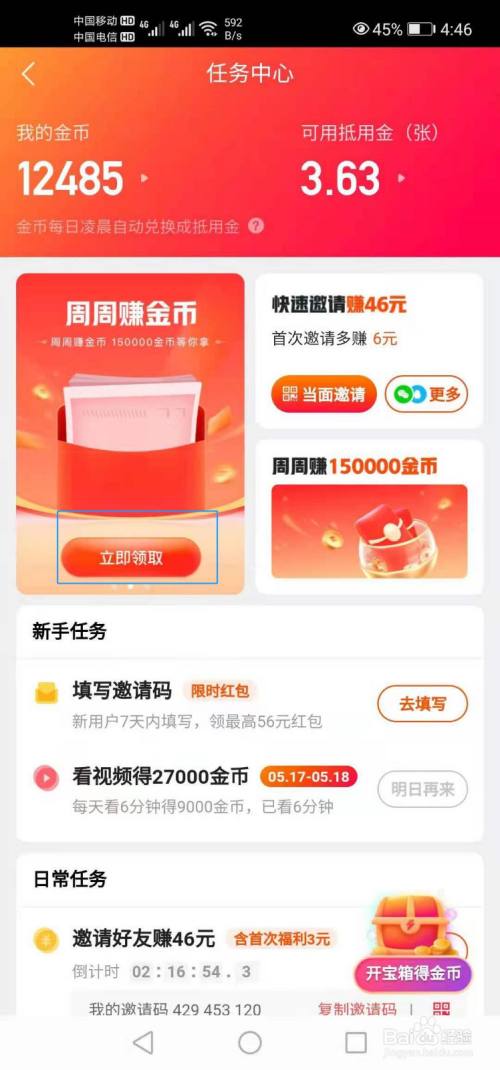 进入到周周赚金币页面,点击“邀好友赚金币”。