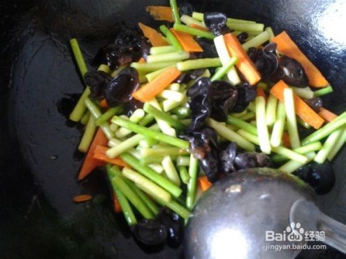 天天做菜吃,所有的菜都吃到了,也不知道今天吃什么菜好,哎,好为难哦,还是去超市看看吧,一会功夫,稀里糊涂的提了2大包回来了,从中挑选了这3样。就做了一道炒黑木耳蒜苔红萝卜菜,看上去都有食欲,本人今天中午的饭菜吃了不少,感觉很好吃。如有想学的又不会做饭的朋友来看看,会做的就当没看到这个啊。看步骤: