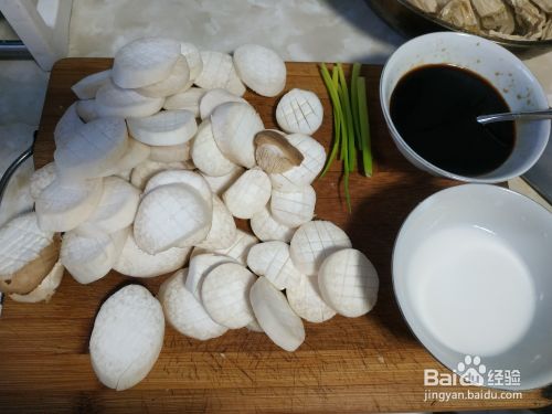 ①将蚝油,生抽,老抽,糖,水调成汁备用②淀粉加水调成水淀粉备用③杏鲍菇切成约1cm厚的斜块,再切成花刀,小心切断。④葱叶切成葱花备用。