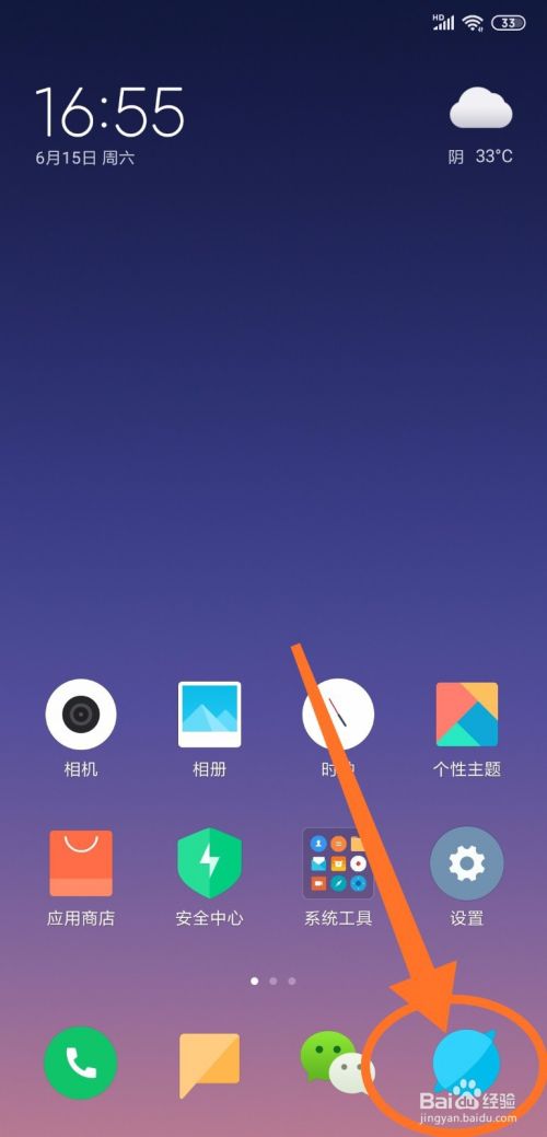 首先在桌面上找到小米手机的自带浏览器并点击打开;