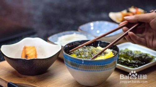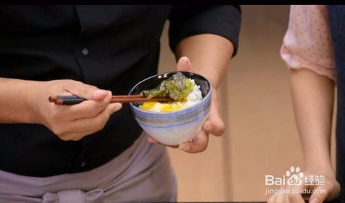 将温泉蛋打入碗中,然后倒在米饭上,用筷子夹住海苔和米饭一起享用吧。