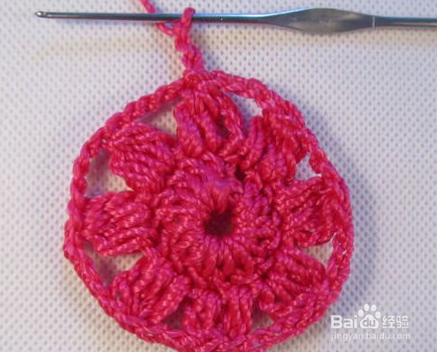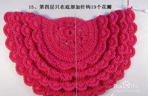 按第二层的方法钩第三层花瓣是加到90针长针18个花瓣