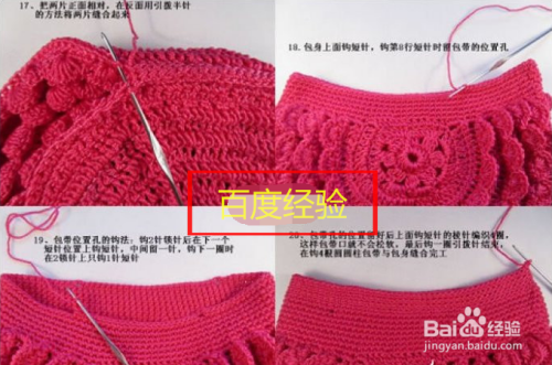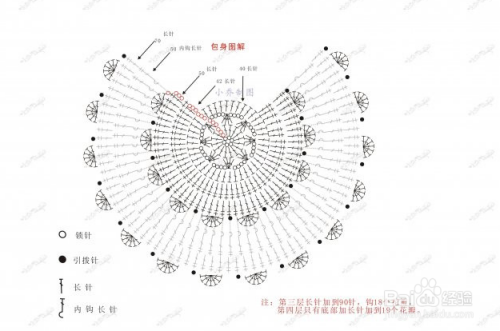 把织片反过来钩95针内钩短针后钩2排珍珠疹就完成包包的一面,按同样的方法钩包包的另一面,另一面不用钩2排珍珠针,只钩到最后95针内钩短针位置就可以了