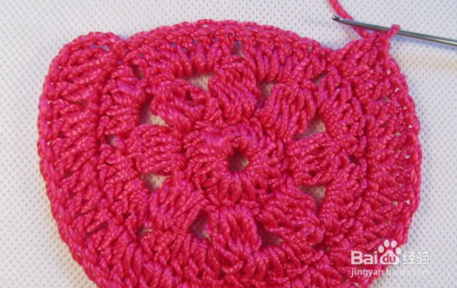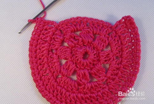 第三圈在网格上钩5长针,加上立起针这一圈共钩了40个长针