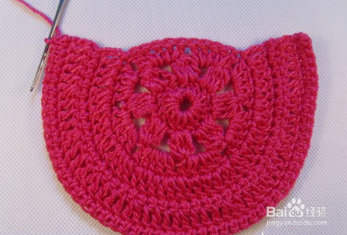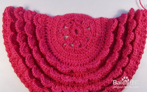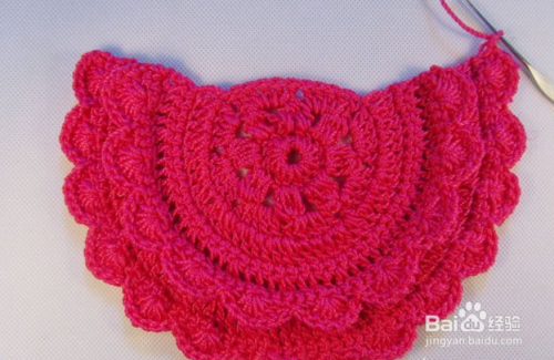 钩50短针回到起始位置后正常钩长针并均匀加针到70长针后返回钩70短针