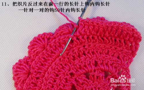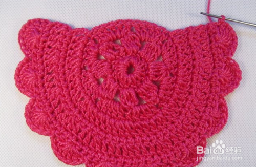 第四圈只钩了大半圈,不钩完,在上一圈的5长针上钩7长针,共钩了42长针钩到上一圈还剩下10长针的位置时停下