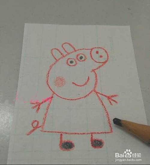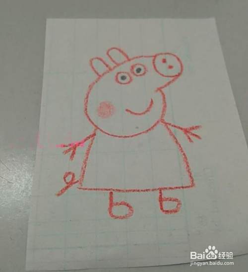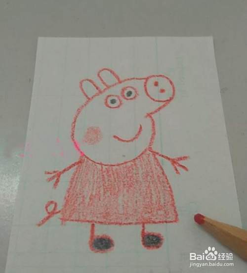 最后,用红笔将裙子涂成红色,小猪佩奇就画好了。