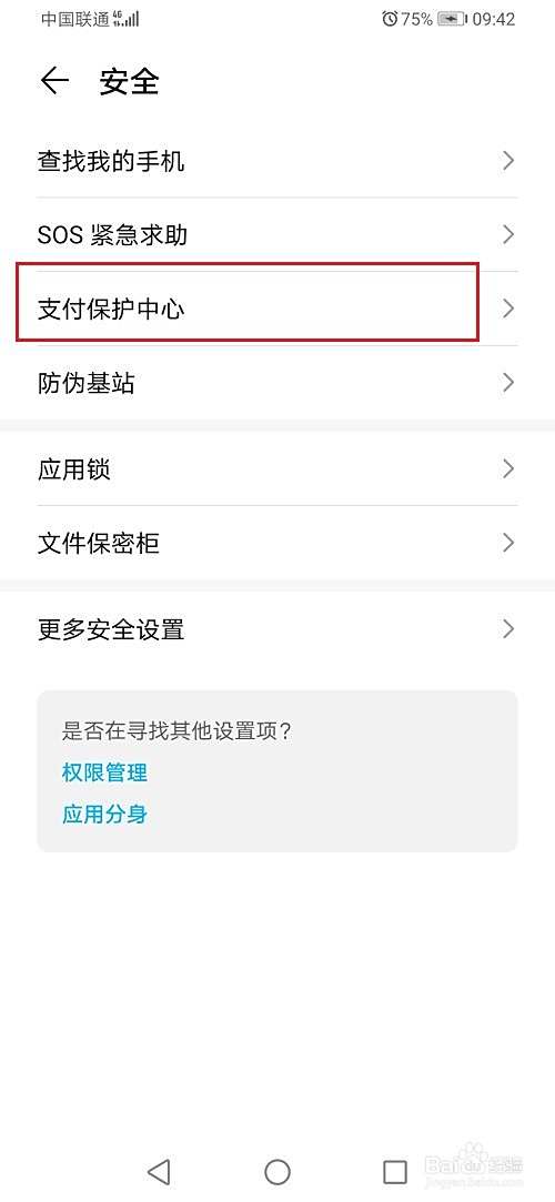 第三步进去华为手机安全之后,点击支付保护中心