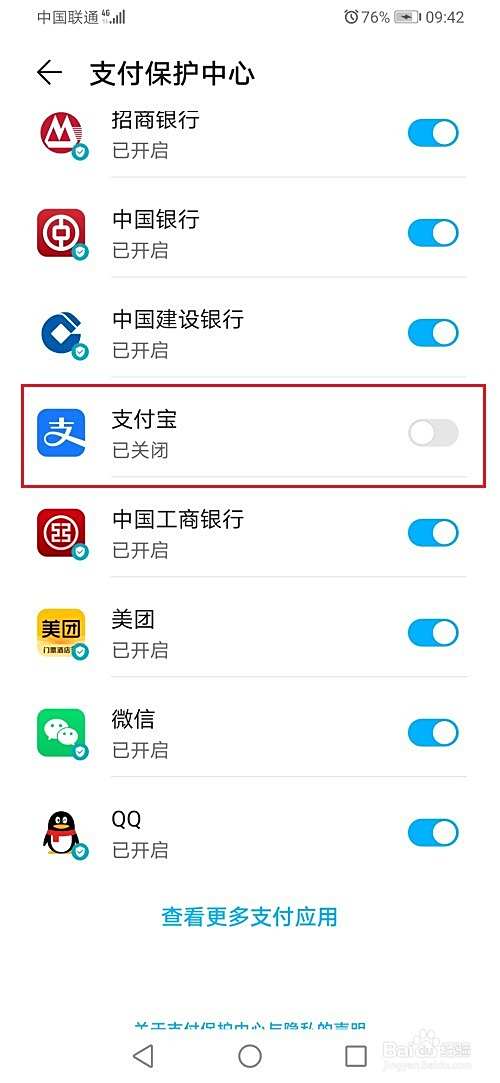第四步进去之后,找到支付宝,点击进行关闭