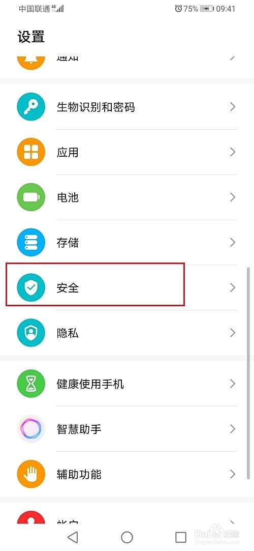 第二步进去手机设置之后,点击安全