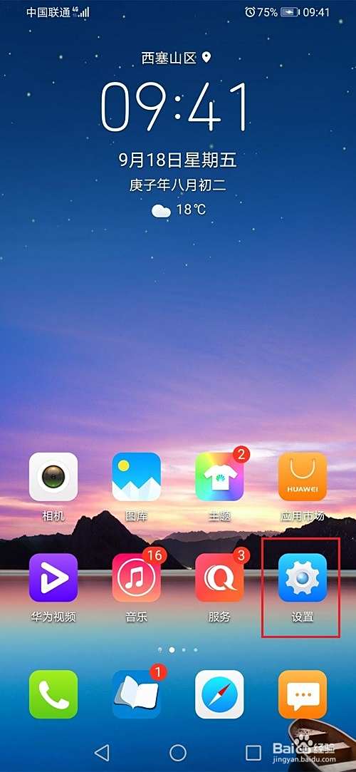 第一步打开华为手机桌面,点击设置