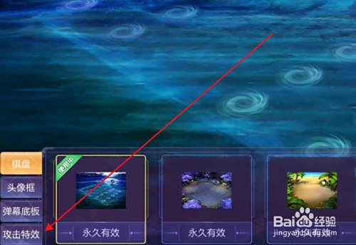 在右侧其余的地方可以观看到我们所获得的其他攻击特效选择其中一个