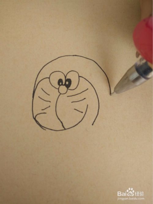 面部画好后,就要画出多啦的头部了,头部尽量往圆形里面画。