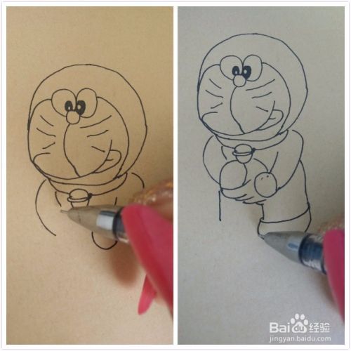 接下来就要着重画多啦的四肢了,注意每个肢体的位置即可,不要有太大的错位就行。