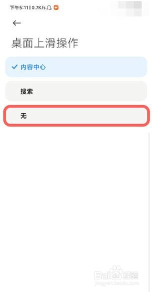 03,将茄毙桌面上滑操作设置为无就可以了。
