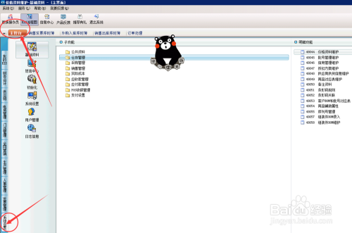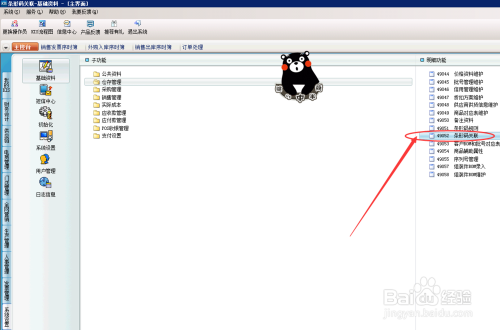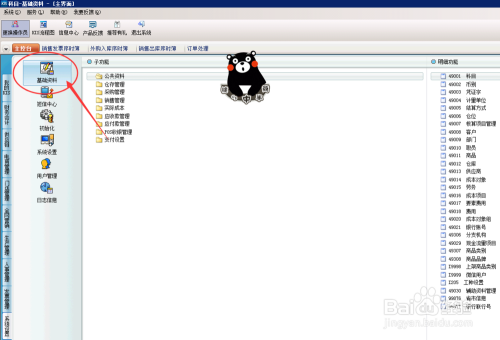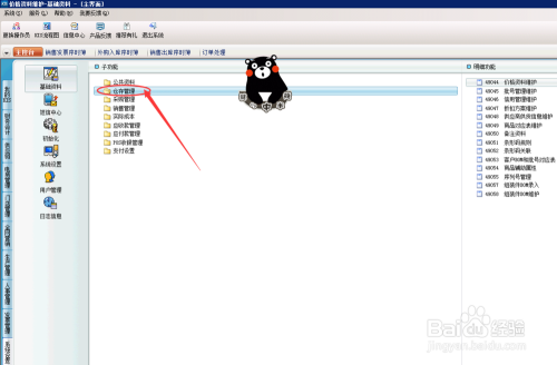 3、点击“基础资料”之后——点击其下的子功能“仓存管理”
