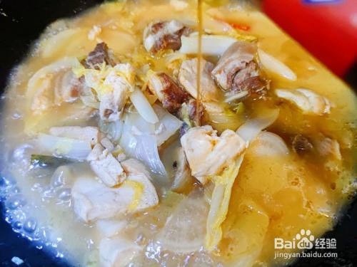 放入1颗家樂老母鸡口味的浓汤宝,大火烧开10分钟
