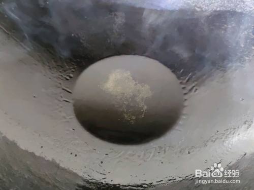 菜籽油倒入锅中预热,撒点盐