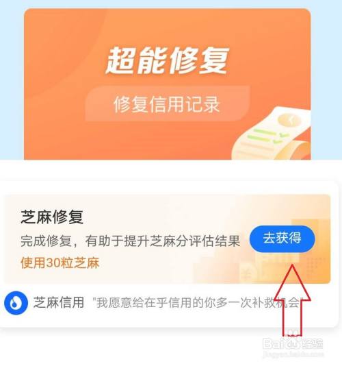 5.找到下方的【芝麻修复】,点击右侧的【去获得】。