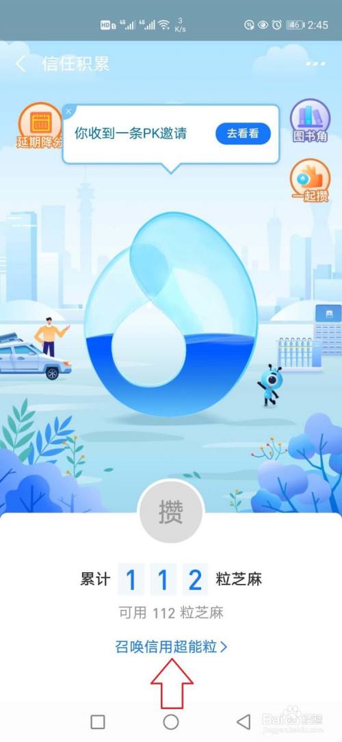点击下方的【召唤信用超能粒】,继续下一步的操作。