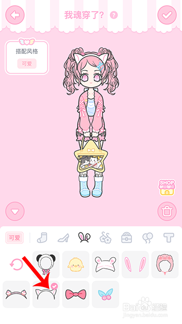 在配饰区选一个猫耳发卡,点击对勾挑战成功。