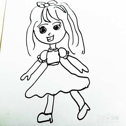 第四步,我们来画卡通公主的两边的双手和裙子部分。