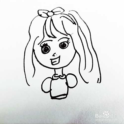 第三步,我们来画卡通公主的脖子,和身体轮廓,以及两边的胳膊。