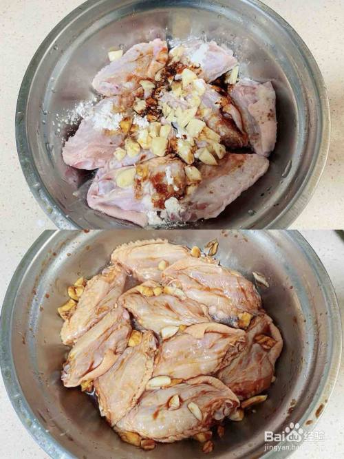 鸡中翅下蒜头,糖,生粉,黑胡椒粉,生抽,鱼露,植物油,麻油,老抽,搅拌均匀,腌2小时以上。