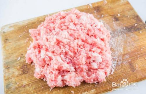 我们选择新鲜的鸡胸肉,清洗干净后,用刀剁成肉馅