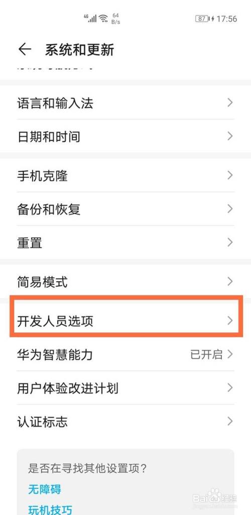 进入设置,搜索并进入关于手机,连续快速点击7次版本号,进入开发者模式。