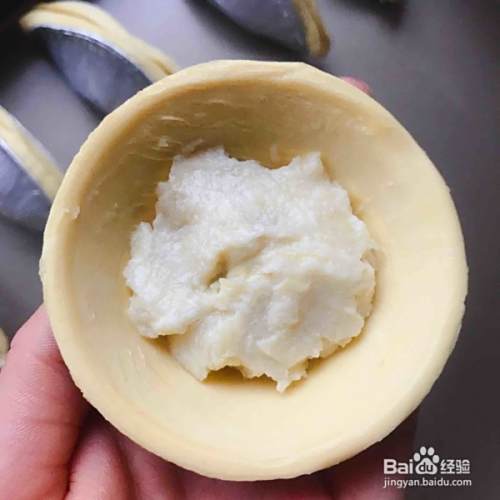 蛋挞皮里放适量榴莲肉