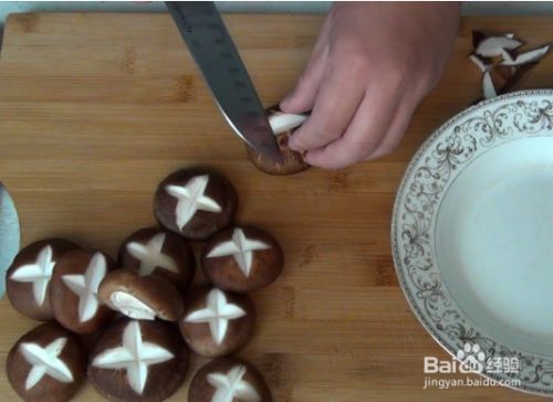 香菇清洗干净,去根后在顶部切十字花刀,也可以根据自己喜好切成不同形状。