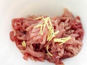 猪里脊洗净切丝,姜切丝