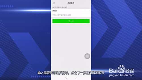 跳转到解冻帐号页面之后,输入需要解冻的微信号,点击下一步进行解冻即可。