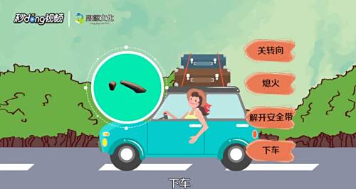 8靠边停车,观察路况,减速打右转,拉手刹,关转向,熄火,解开安全带下车。