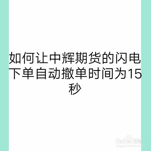如何让中辉期货的闪电下单自动撤单时间为15秒?这可能是很多喜欢中辉期货的朋友们比较感兴趣的问题。那么应该如何解决这个问题呢?今天就与小编一起来共同探讨一下这个问题吧。