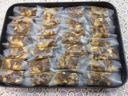 配方中的250克是核桃去皮后净重250克,核桃去皮后入烤箱上下火140度10分钟,核桃粒大小自行选择。