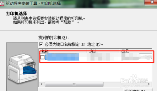 之后安装程序会自动的搜索同一网络上的打印机。图中的红色区域就会出现打印机的名字。