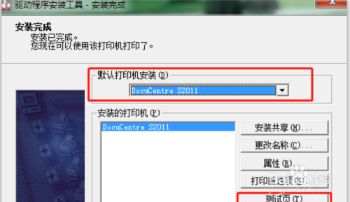 安装完成,选择默认的打印机为S2011。可以点击测试页测试是否正常。