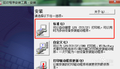 驱动下载完成后双击安装,点击”Accept“,出现选择安装驱动的页面,点击”标准“。