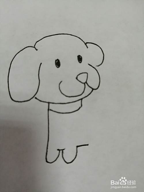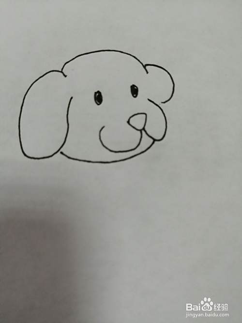 第三步,在小奶狗的可爱小鼻子上面画出小眼睛。