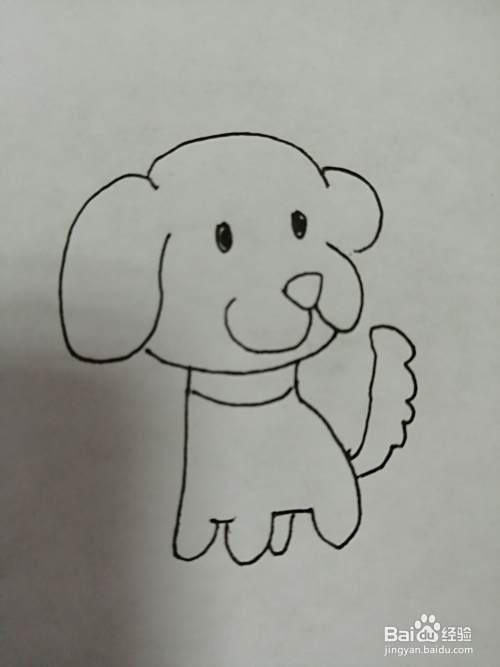 第六步,最后把可爱的小奶狗的尾巴画完整。